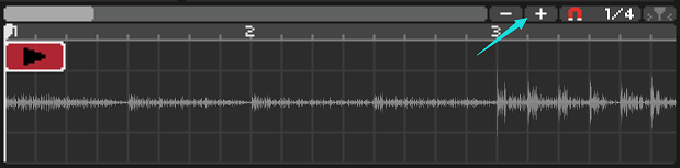 调整好BPM之后还需要调整偏移。我们看一下下面波形图案,点击‐和+两个按钮进行缩小和放大。