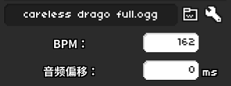 制作一个自制谱的第一步就是导入一首音乐。虽然编辑器本身对音频文件格式无严格要求,但还是请使用.ogg格式的音频文件,以减少出BUG的可能性,对后续的调整偏移和选关界面试听也有帮助。如果你需要.ogg格式但是手头只有.mp3可以使用aconvert等软件转换。音乐的文件名尽量只包含字母、数字和半角符号。