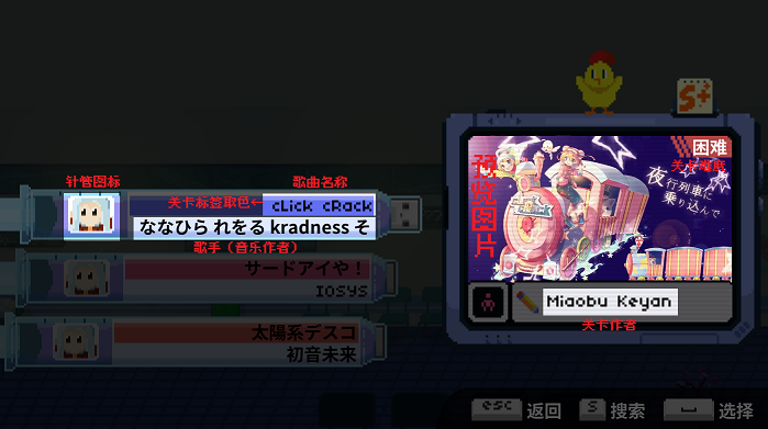 - 如果一个关卡里面有好几段同作者同标题的音乐,随便写哪个都行(例如:《Space Oddity》和《Space Oddity [2015 Remaster]》都行)