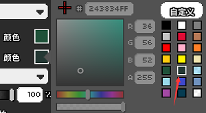 点击任何一种颜色都可以进行颜色的配置。例如,将第二行倒数第一个颜色改为 #243834FF :