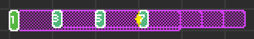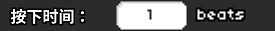 在编辑器里面,长按拍子并不是一个单独的种类,而是归属在七拍子里面的,想要创建一个长按拍子,只需要建立一个七拍子之后设置“按下时间”这个选项。这时就能在工作区看到一个紫色的格子区域,代表在这个时间段内必须按住空格键。