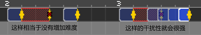 当然,在被跳过的二拍子的这段空白时间里,也可以放置多个二拍子脉冲,以丰富谱面的节奏设计。跳过拍子的“间隔”参数会影响跳过符号的动画时长。