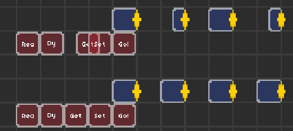 二拍子本质上是对一段节奏(循环节)的不断重复,这段节奏可以由一个或多个二拍子构成。在二拍子开始之前,会使用护士提示,以 Rea、Dy、Get、Set 的形式,重复一次(或多次)这段二拍子循环节,并在最后用 Go 表示二拍子的开始。
