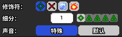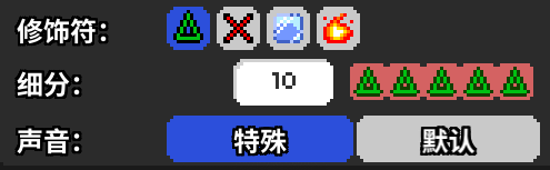 在修饰符中选择方块后,将细分数量设为大于 1 的值或者点击细分符号△,即可创建细分拍子。特殊音效的添加与方块二拍子类似。最多可以将细分数量设置为 10 。