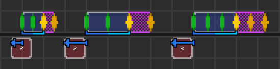 同时,一个二拍子也可能拥有不止一个脉冲。若要实现这种效果,只需将几个二拍子的尾端对齐,首端放在不同位置即可。