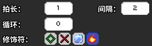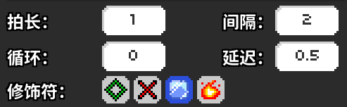选中一个二拍子,在修饰符中选择方块符号◇,将细分数量设为 1 ,便创建了一个方块二拍子。方块二拍子出现时需要添加特殊音效,在方块二拍子的声音栏选择“特殊”即可自动添加提示音。