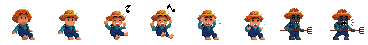 当然首先得知道精灵图是什么。我们查看游戏的内置人物,会发现它们都不是静止的图片,而是会随着节奏摇摆的(例如武士的点头),也是能做出各种动作的(例如咖啡师左右互搏做咖啡),这些动作在编辑器中并非是以.gif动图的形式来存放的,而是把每一帧都拆出来,并排放在一起保存成.png。这就叫做精灵图。