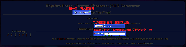 图片现在是有了,但是想要编辑器识别这个图片,还没有那么简单,我们还需要准备一个.json文件。你可以在这个网站里导出.json文件。我们已经将网站进行了汉化,不过具体的操作流程和之前版本给出的原始网站是相同的。下面给出的具体操作流程: