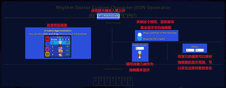 "rowPreviewFrame":在蓝色版块的缩略图里面显示第几帧画面。