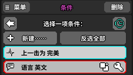 - 语言 基于当前的游戏语言进行判断。可以用于使关卡中的浮动文字和对话内容根据游戏语言的不同而显示不同语言。